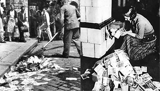 단순히 20세기만 보더라도 화폐가 가져야 할 신뢰의 붕괴는 여러 번 일어났습니다. 20세기 초 가장 큰 사건은 1차 세계대전이며, 그로 인해 패전국인 독일에는 엄청난 인플레이션이 일어났습니다. 패전국은 전쟁에 따른 보상금을 지불해야 하는데, 그 금액을 마련하는 방법이 잘못되었던 것입니다. 원래는 자신이 보유하고 있는 자원이나 서비스 등을 수출하거나, 자산을 매각하거나 하는 등의 행위로 그 비용을 마련해야 했으나, 아무 생각 없이 화폐 발행량을 늘려 보상금을 마련했습니다. 즉, 종이에 돈을 인쇄해서 보상금으로 사용한 것입니다. 그 결과 독일 화폐의 가치는 떨어지고, 인플레이션이 발생할 수밖에 없었습니다. 결국 현금을 갖고 있던 사람들에게 치명상을 안겨주었습니다. 이러한 상황을 예상하거나, 정보를 들은 자산가들은 현금을 부동산이나 귀금속 등으로 전환하여 피해를 최소화하였습니다. 더 나아가 이를 이용해 부를 축적한 이도 있습니다.