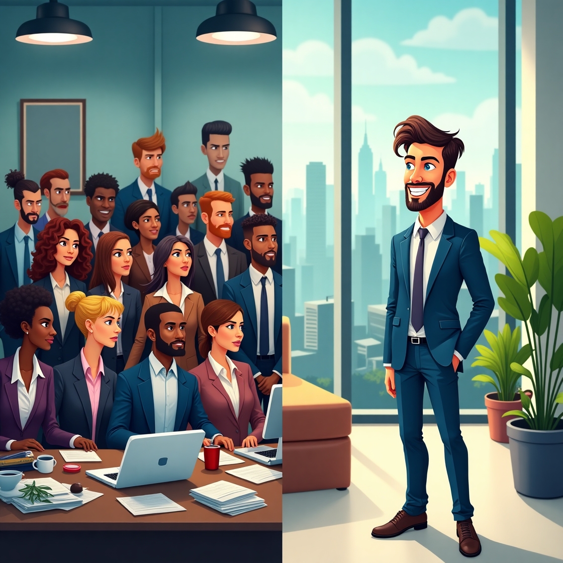 - 회사에 의존하여 일하고, 근무 시간만큼 돈을 벌음