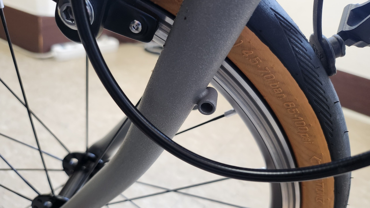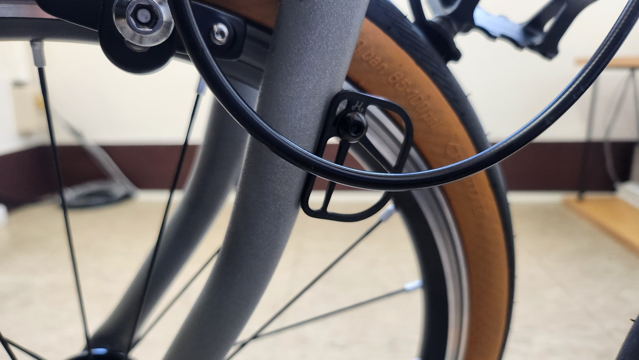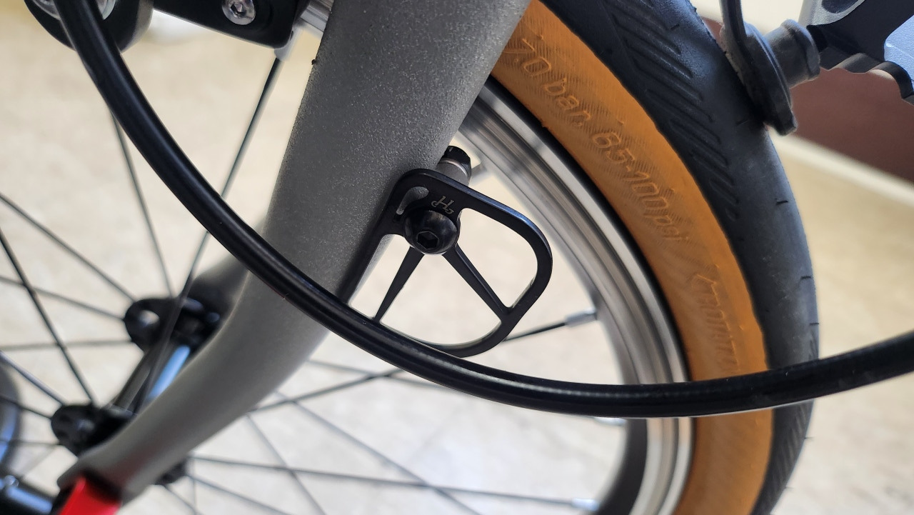 앞 포크에 장착된 부품으로 포크와 케이블 사이에 있습니다.