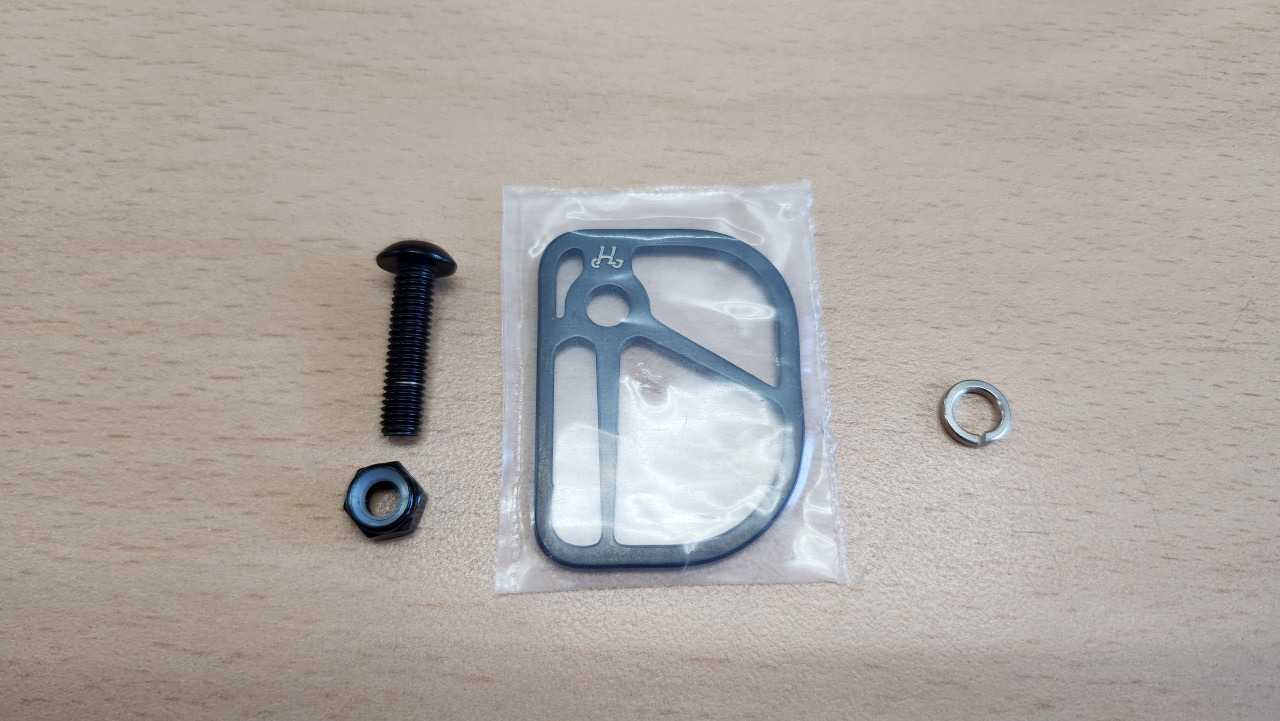 볼트에 펜더 디스크를 끼운 뒤, 포크 구멍에 넣습니다. 그리고 스프링 와셔와 너트를 끼우고 조이면 끝입니다.