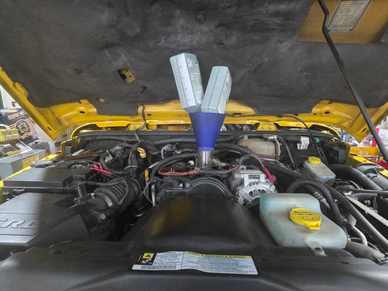 시원하게 들이붓습니다. 엔진오일 6L에 1병이라고 하니 용량도 얼추 맞습니다.